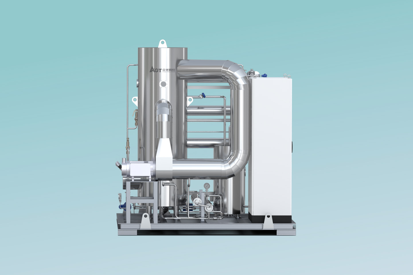 MVR熱泵精餾系統(tǒng)以高效旋轉精餾床為基礎,利用離心力場代替重力場,強化相與相之間的相對速度和相互接觸,通過強化傳質傳熱來提高分離效率縮小設備體積。 通過在系統(tǒng)中引入適用于小流量、大壓比的螺桿式蒸汽壓縮機,即可實現(xiàn)MVR循環(huán)熱泵精餾。